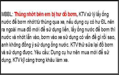 => Ảnh hưởng tiến độ làm xe KH và tạo hình ảnh thiếu chuyên nghiệp trong mắt khách hàng.
