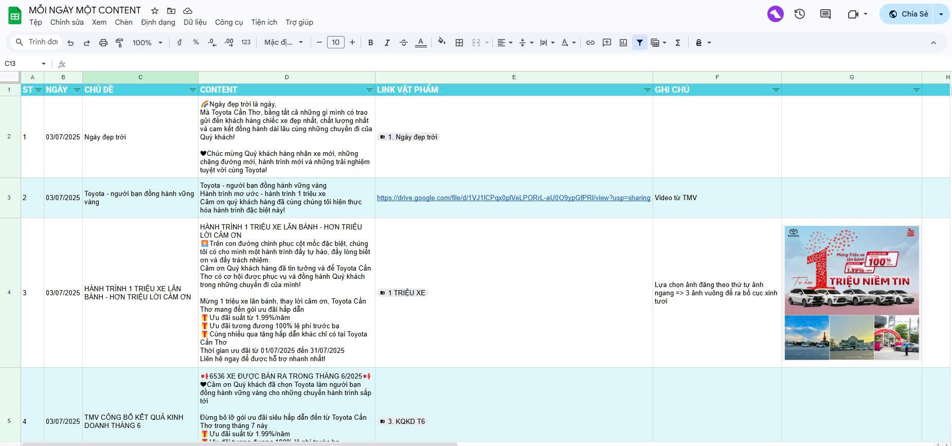 – Ngoài ra nhóm còn có 1 link tổng hợp các bài đã và sẽ đăng kèm link google drive vật phẩm giúp NVBH có thể đăng nhiều nội dung khác nhau theo kế hoạch cá nhân mà không phụ thuộc vào bài đăng của TCTC mà vẫn đảm bảo hình ảnh chất lượng.