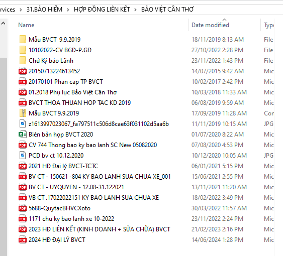 – Tên file hợp đồng trùng lắp hoặc không thể hiện rõ loại tên hợp đồng do cách mỗi công ty bảo hiểm đặt tên file gửi qua khác nhau -> khó nhận biết loại hợp đồng cần tìm